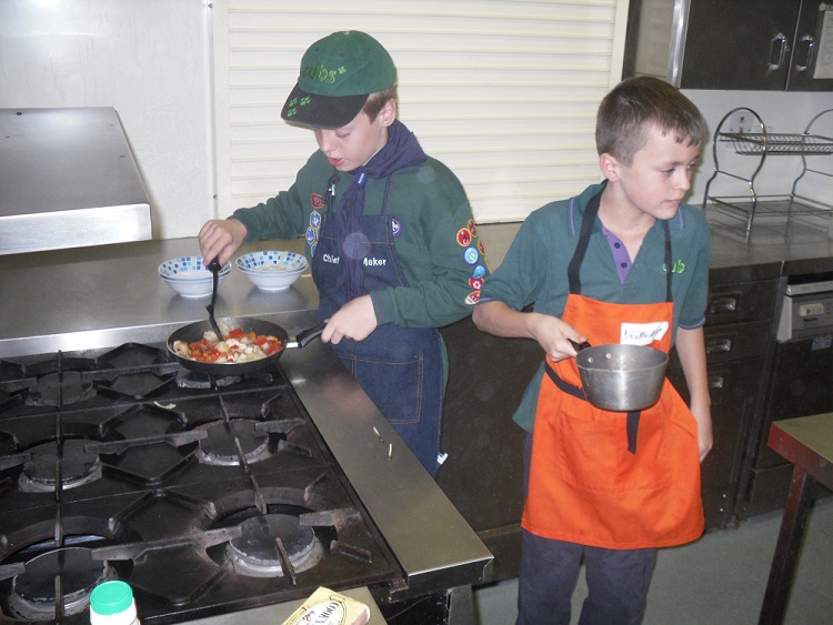 As part of the Cubs Chef’s badge, 1st Taverham – Seeonee Cub pack planned a two-course menu of chicken & vegetable stir fry followed by cheesecake. After much peeling, slicing, dicing, stirring and tasting, the Cub’s families joined the meeting in time to see the Cub’s cooking skills in action and to enjoy tasting the dishes.