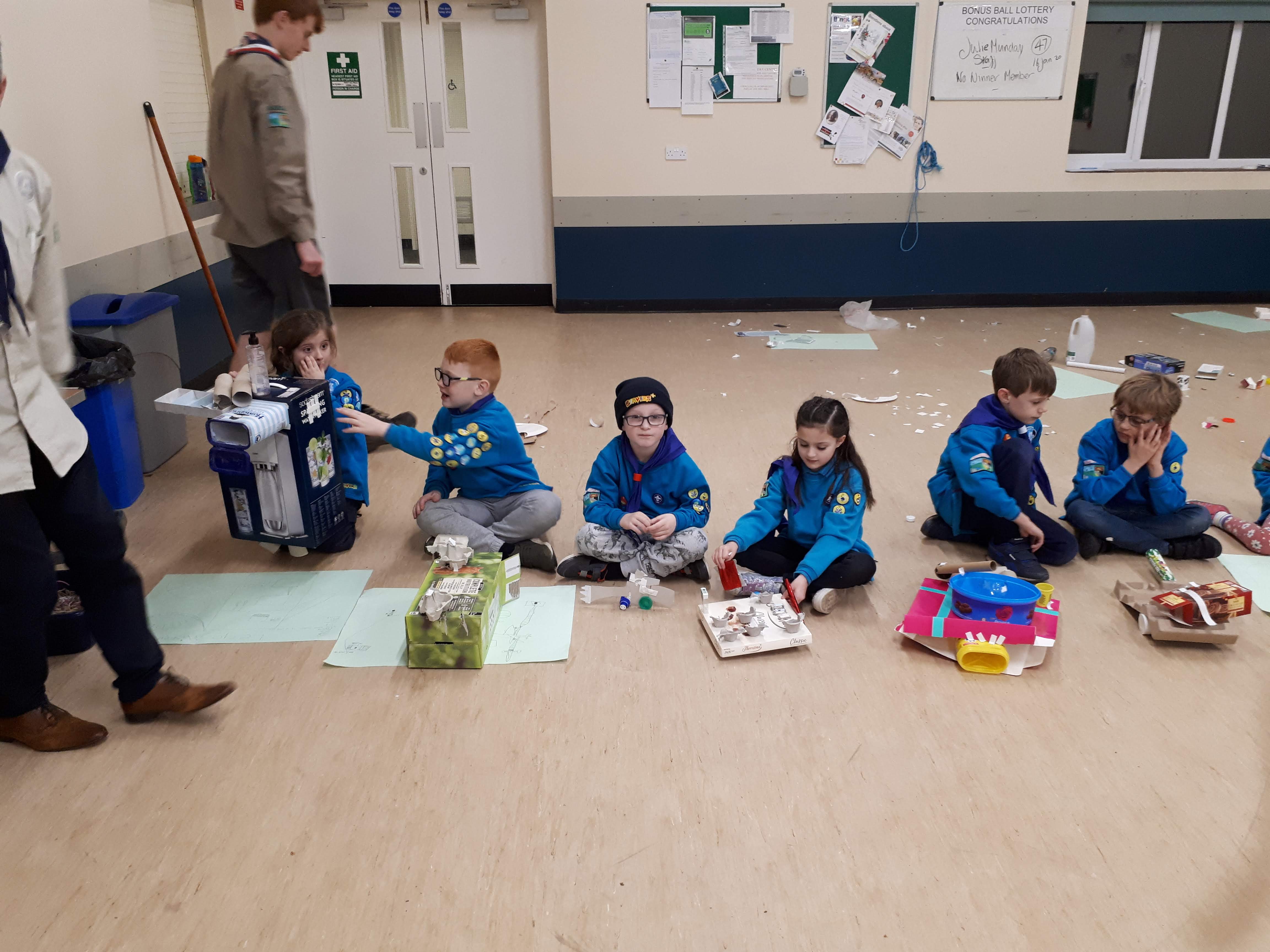 Then comes the junk to build their designs (recyclable material) and the beavers made their models from their drawings with some help from the 4 young leaders.