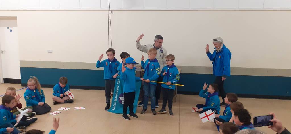 We celebrated St George’s Day with a fun flag making session at the hut this week, and we had the pleasure again to invest a further few beavers who are now joining the ranks at 1st Taverham.